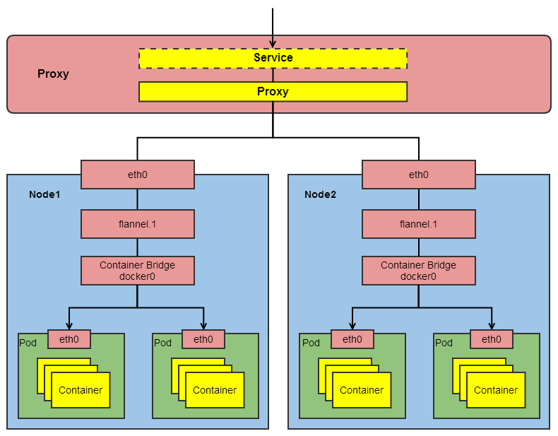 不同的Node之间,Node的IP相当于外网IP,可以直接访问,而Node内的docker0和Pod的IP则是内网IP,无法直接跨Node访问。需要通过Node的网卡进行转发。